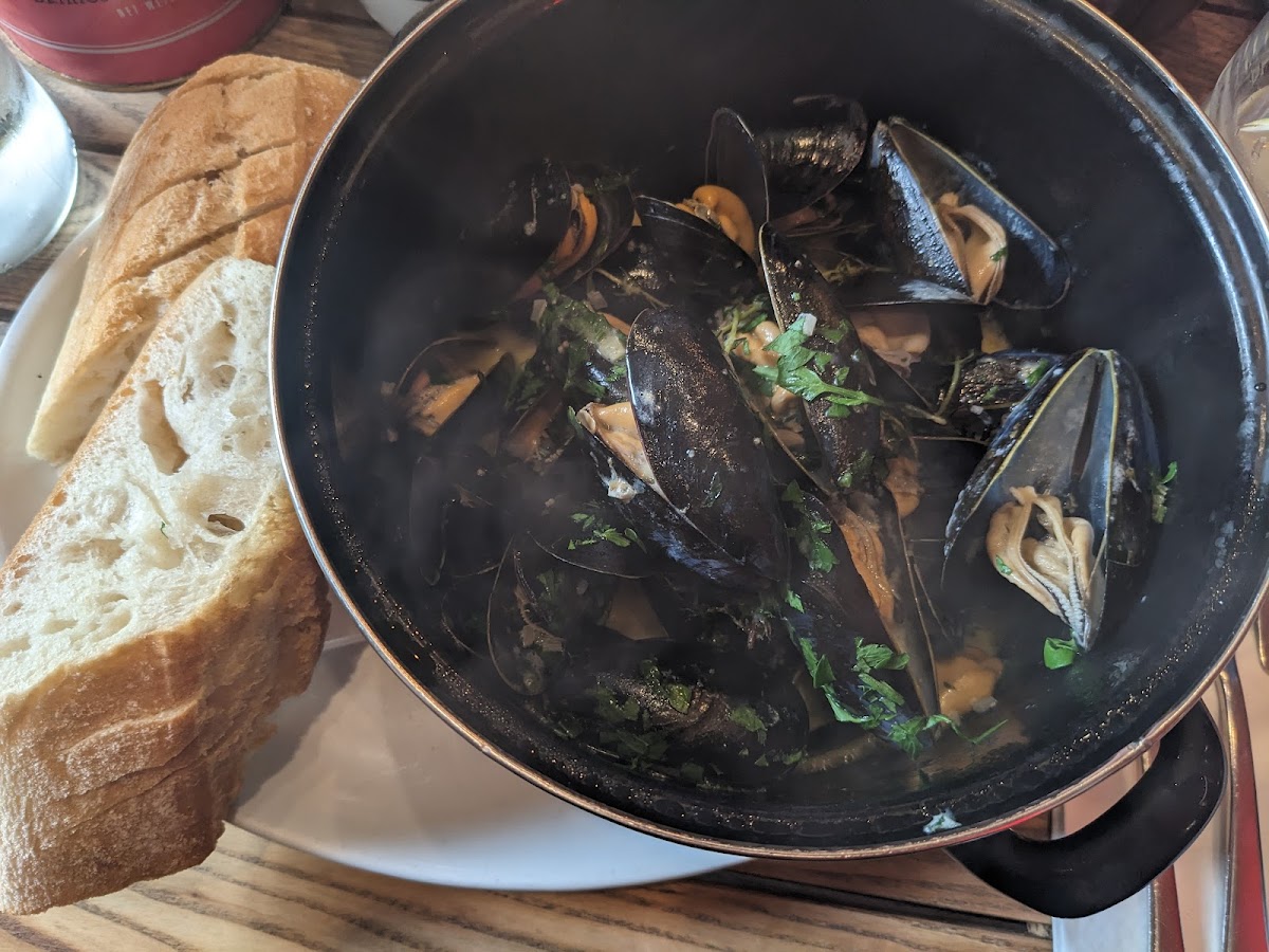 Then there’s the Crab Sandwich-simple, fresh, and incredibly satisfying. The kind of dish that makes you wonder why you ever settled for anything less than fresh crab between two slices of bread. The Moules Frites or Pain (mussels served with fries or bread) is another fan favourite, especially when paired with a crisp white wine from their impressive wine list.